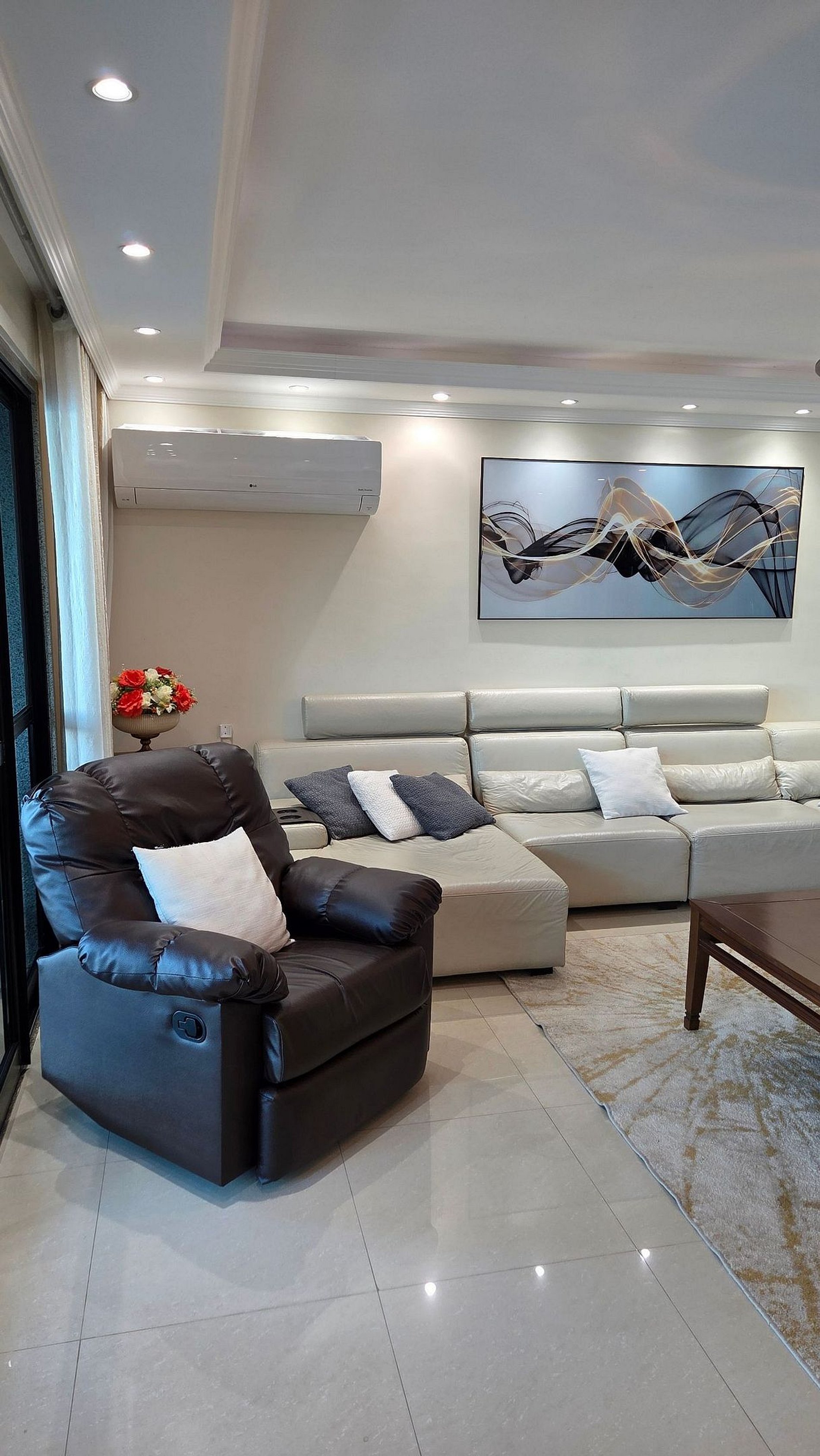 Área de estar com sofá/cadeira